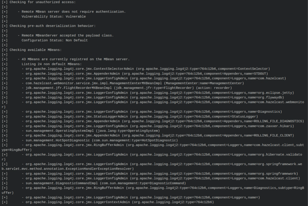 An MBean server is a service that manages the MBeans of a system, which we’ll see demonstrated in an attack later in this post. Developers can register their MBeans in the server following a specific naming pattern. The MBean server will forward incoming messages to the registered MBeans. The service is also responsible for forwarding messages from MBeans to external components.