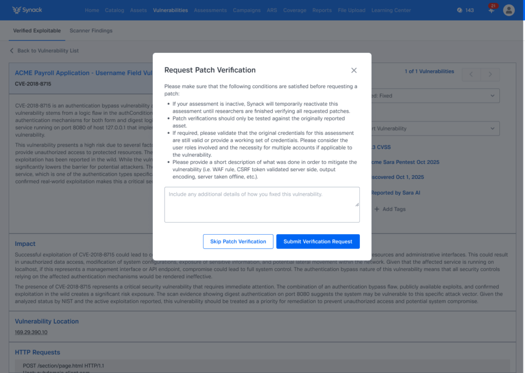 Step 4 – Synack Team Provides Final Validation & Re-Testing