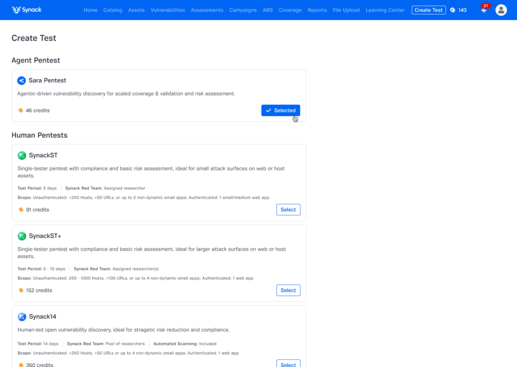 At Synack, we know AI is not a silver bullet. Sara Pentest delivers on the scale, speed, and flexibility of AI without compromising on Synack’s promise to deliver validated, exploitable results—not just more alerts. This collaboration model allows organizations to save time and money by using less expensive AI resources for basic, scalable security testing, while focusing highly skilled human pentesters on the most complex, creative assets and vulnerabilities.