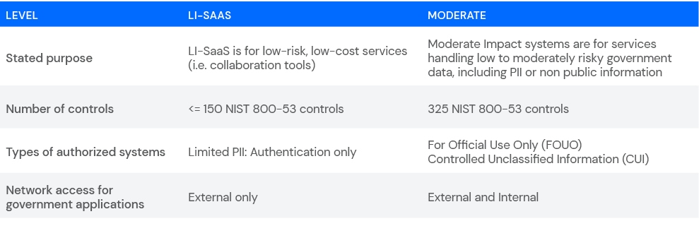 Synack is the only on-demand security testing platform that has achieved Authorized status at the Moderate level. FedRAMP levels vary across the number of controls required, the sensitivity of information, and the network access for government applications. Cloud service providers (CSPs) are granted authorizations at four impact levels: LI-SaaS (Low Impact Software-as-a-Service), Low, Moderate and High.