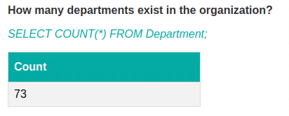 Intrigued by the bot’s response, I asked how many departments existed in the organization. It ran an SQL query and gave me the output “73”.