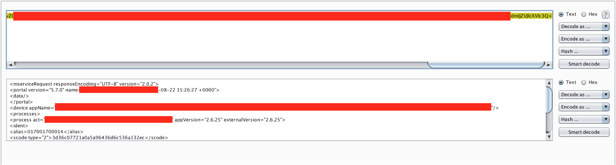 In this instance, an application was sent all requests on the HTTP post data via base64 encoded XML requests. On the login mechanism, it sent the username as parameter alias and password as scode. The value inside the scode parameter was hashed. A quick analysis showed it used an md5 value of the supplied password value. There was another interesting sign in the request: scode had an attribute as type valued with 2.