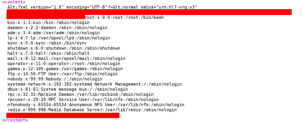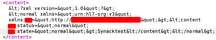 <normal xmlns="urn:hl7-org:v3" xmlns:XX="http://REDACTED.com/REDACTED"><content XX:statu This quickly caught my attention. This was XML data being passed inside the XML body in a SOAP request (Inception vibes).