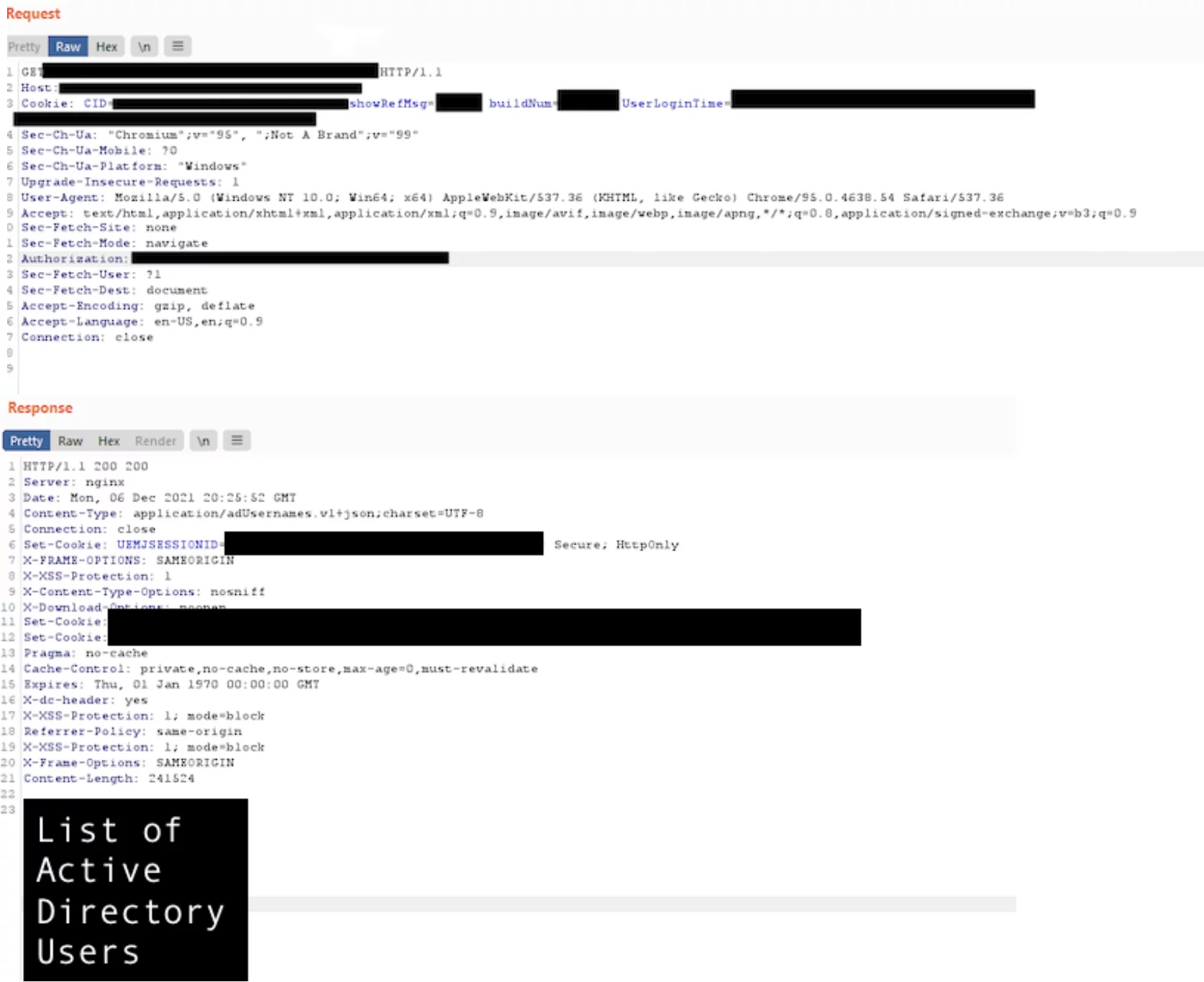Another one of our SRT members found a very interesting and high-impact Broken Access Control vulnerability resulting in the possible compromise of several machines in the client’s network (sensitive info changed for client and researcher privacy). This was done by finding an administrator’s authentication token for an API used for patch management.