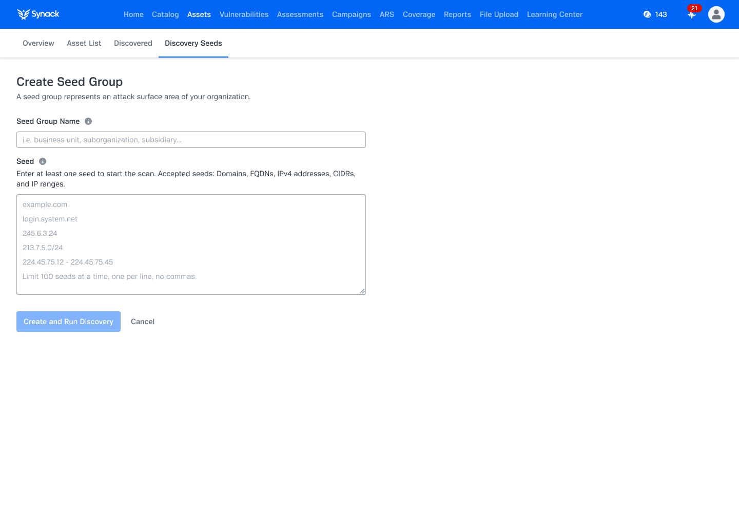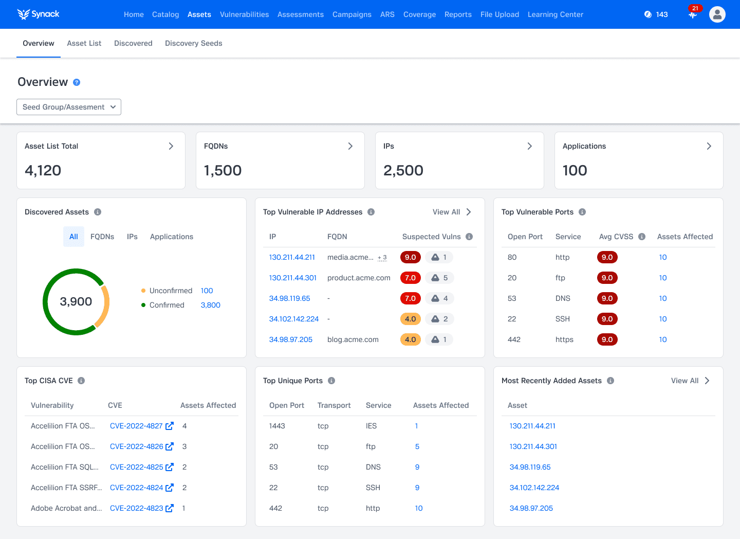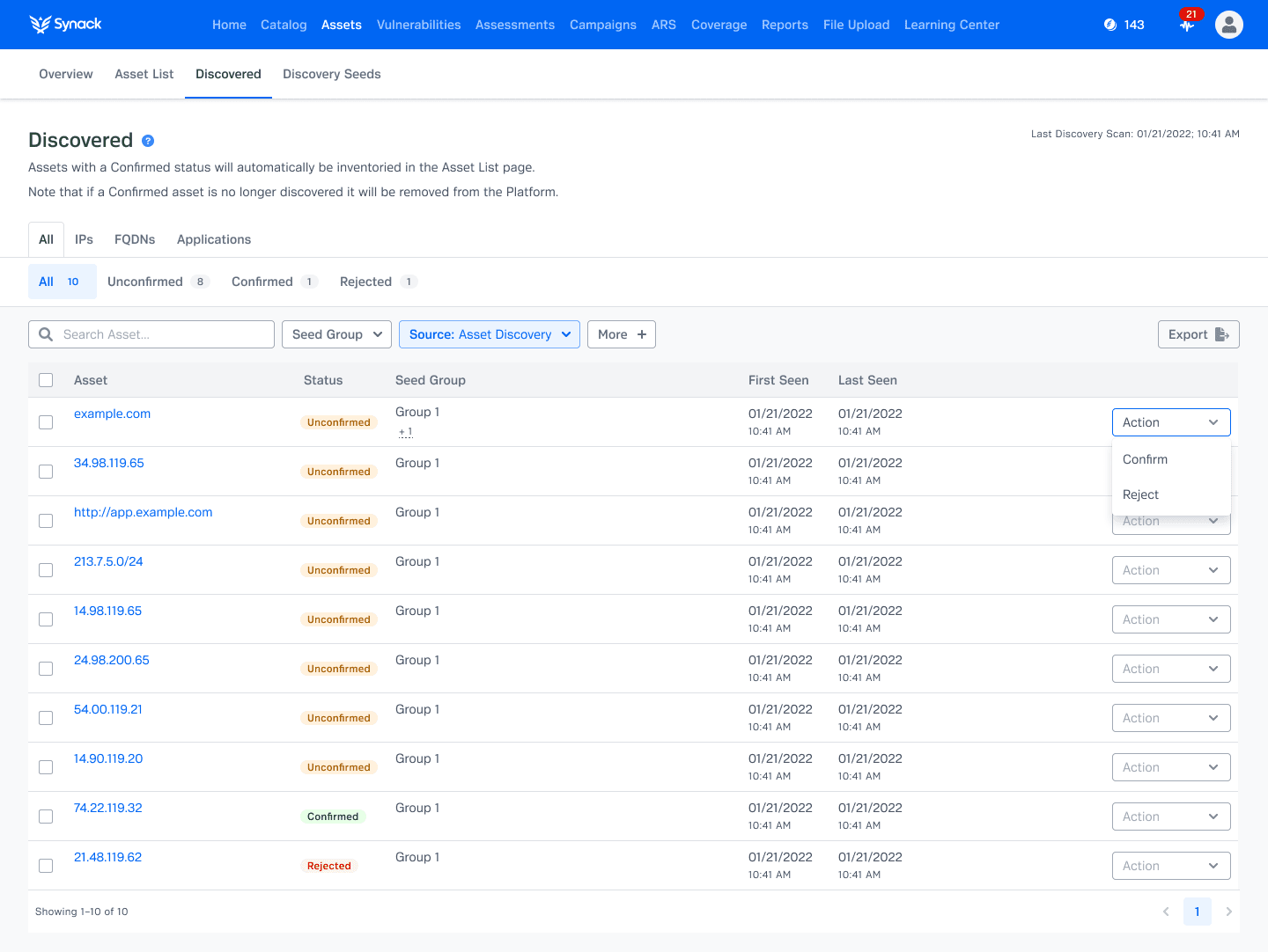 Continuous Attack Surface Discovery (ASD) is included with the Synack Platform, enabling self-service asset discovery, asset inventory, asset insights and visibility into newly discovered assets.